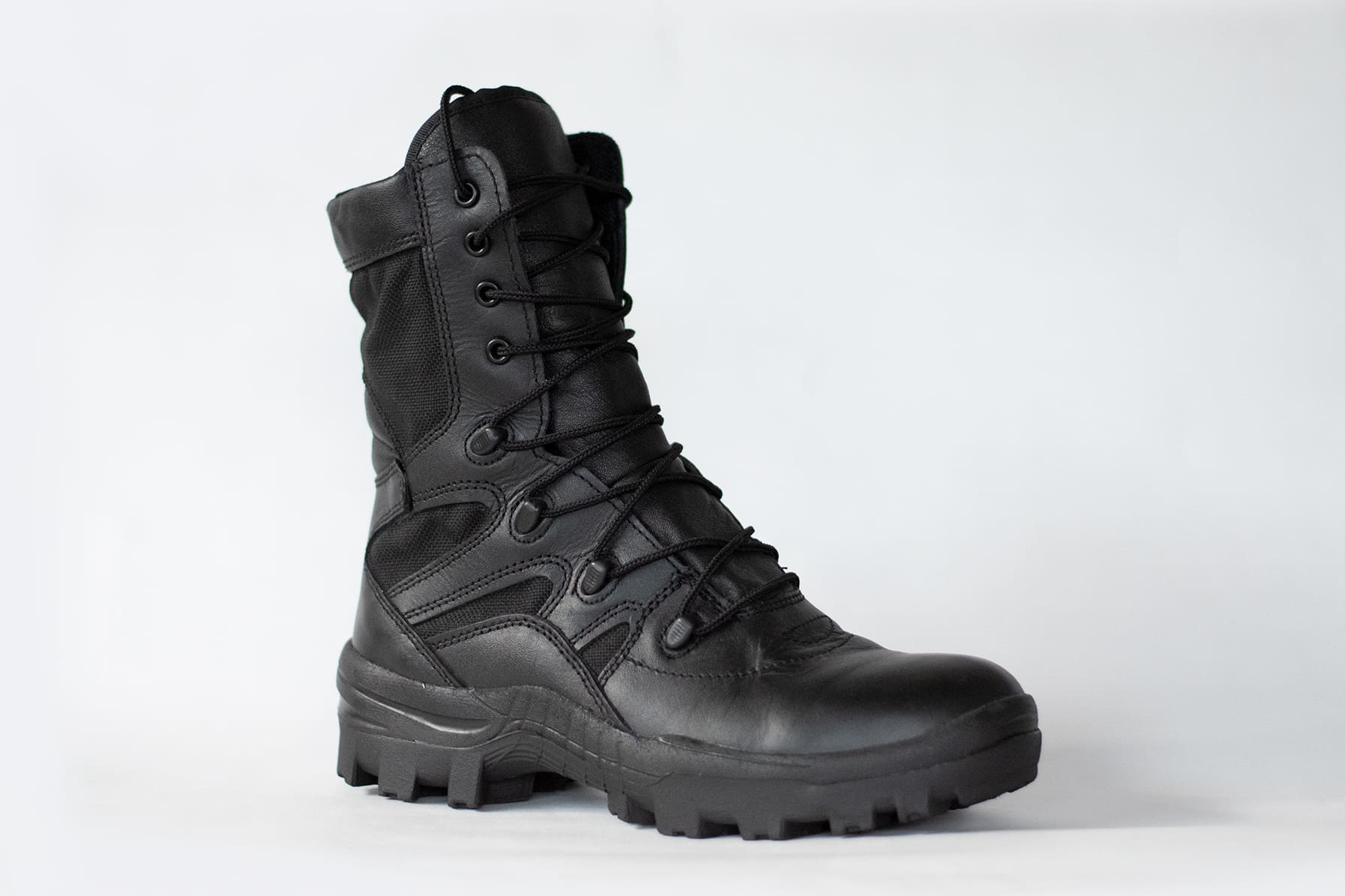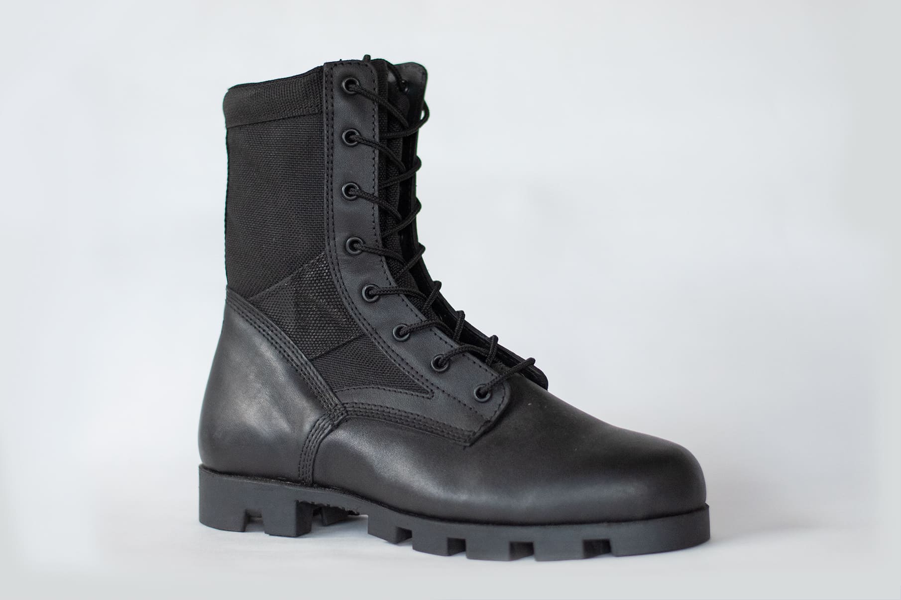 Bota media caña en cuero y lona con cierre lateral